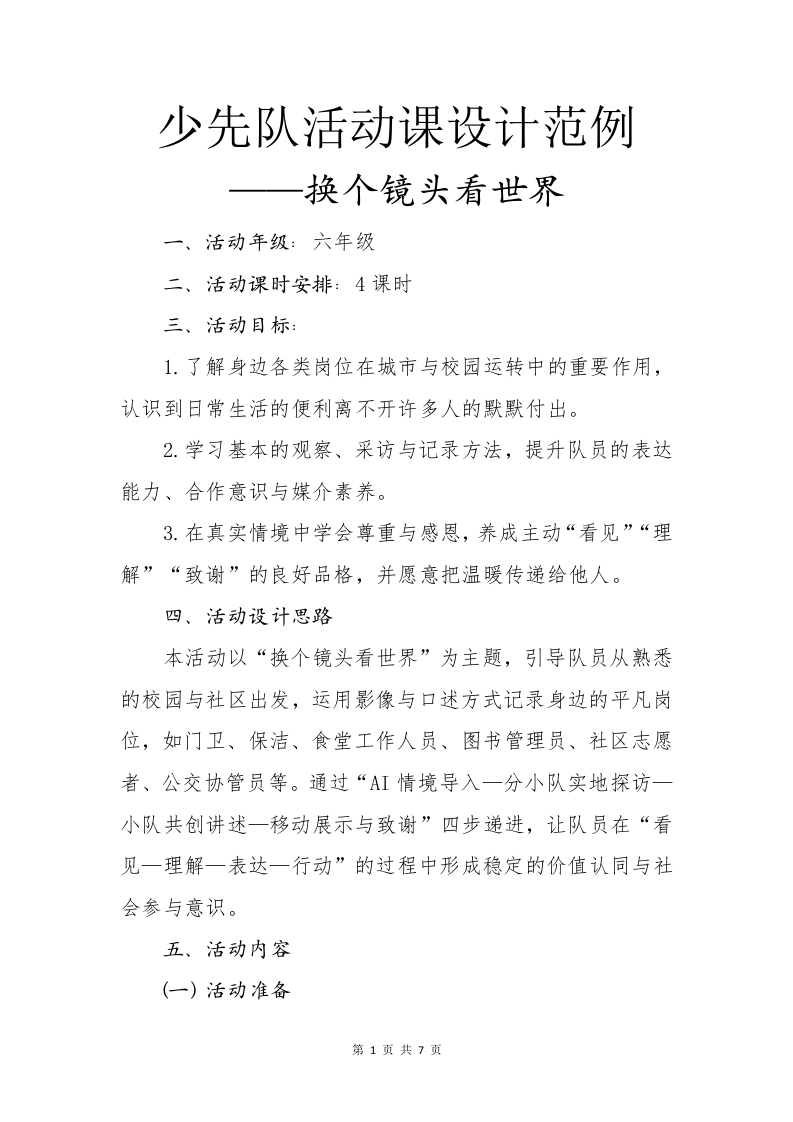 首页教务PPT课件班会(逐字稿)少先队活动课设计范例——换个镜头看世界