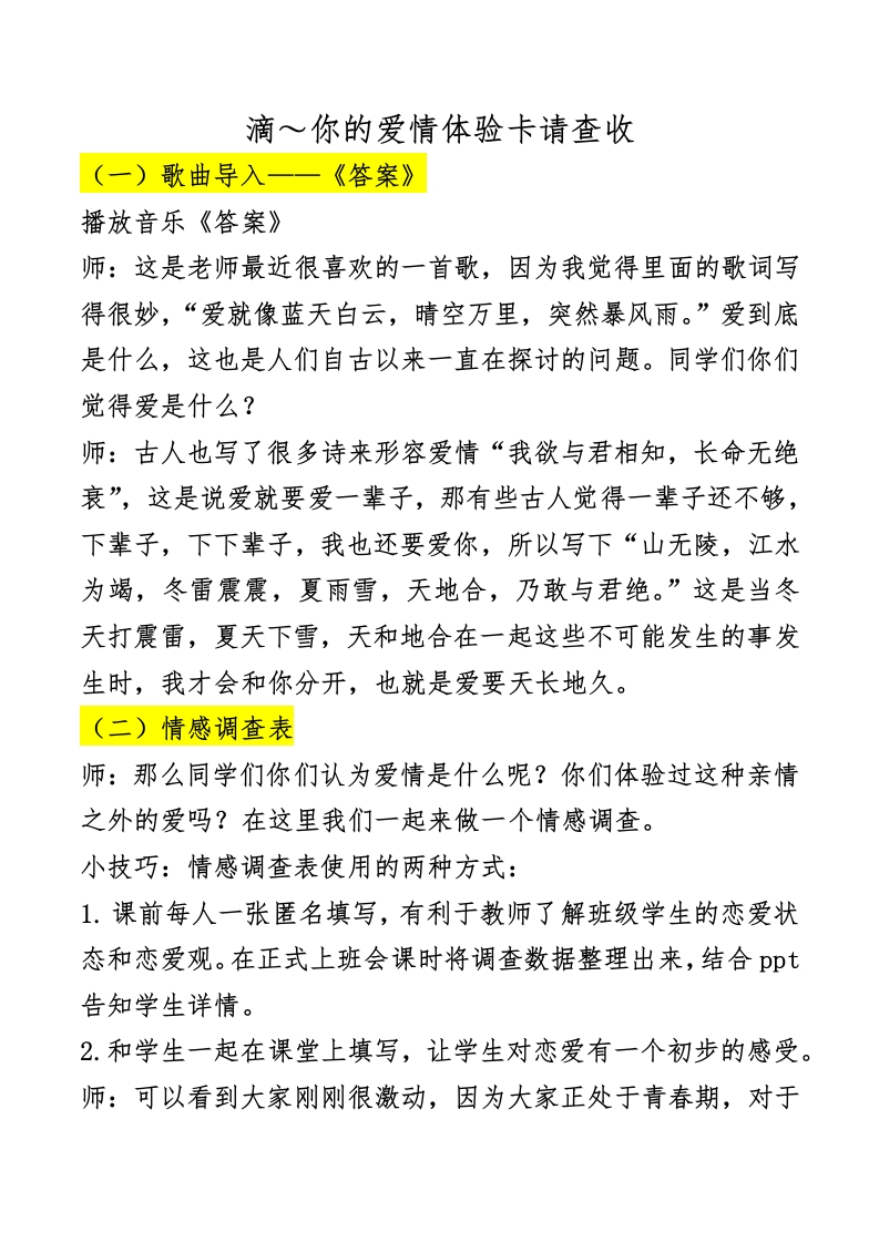 首页教务PPT课件班会(逐字稿)滴~你的爱情体验卡请查收文稿