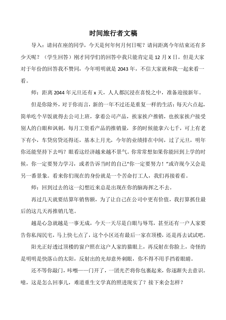 【初中】【励志教育】主题班会:时间旅行者文稿