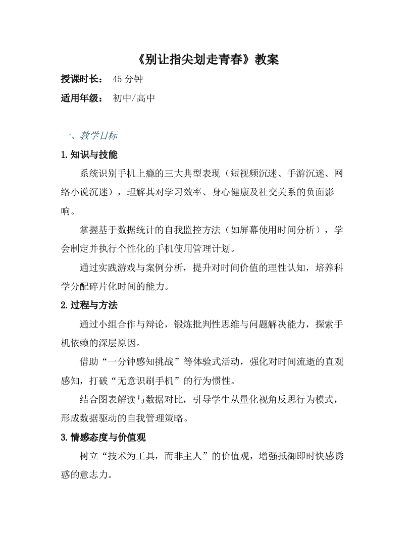 首页教务PPT课件班会(逐字稿)《别让指尖划走青春》教案