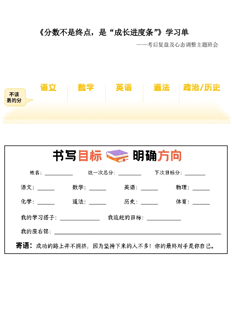 《分数不是终点,是“成长进度条”》考后复盘心态调整主题班会—学习单