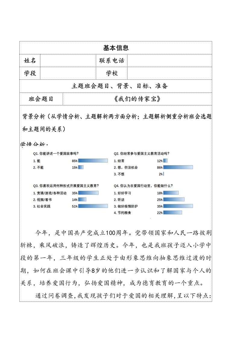 一件传家宝,一脉中国情,班会教案