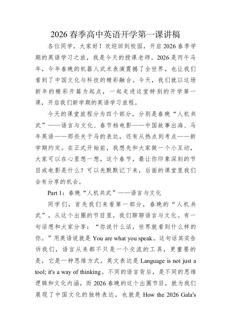【高中】2026春季高中英语开学第一课讲稿