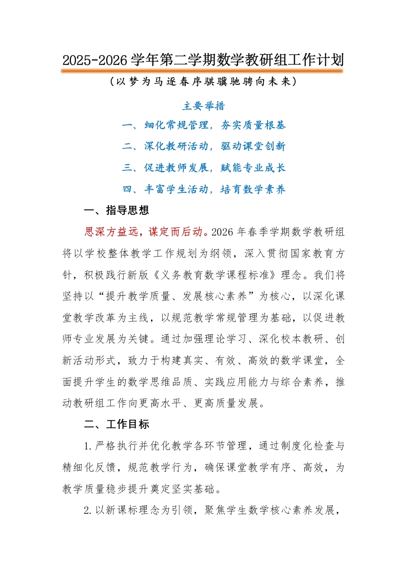 首页教务管理计划总结2026年春季数学教研组工作计划